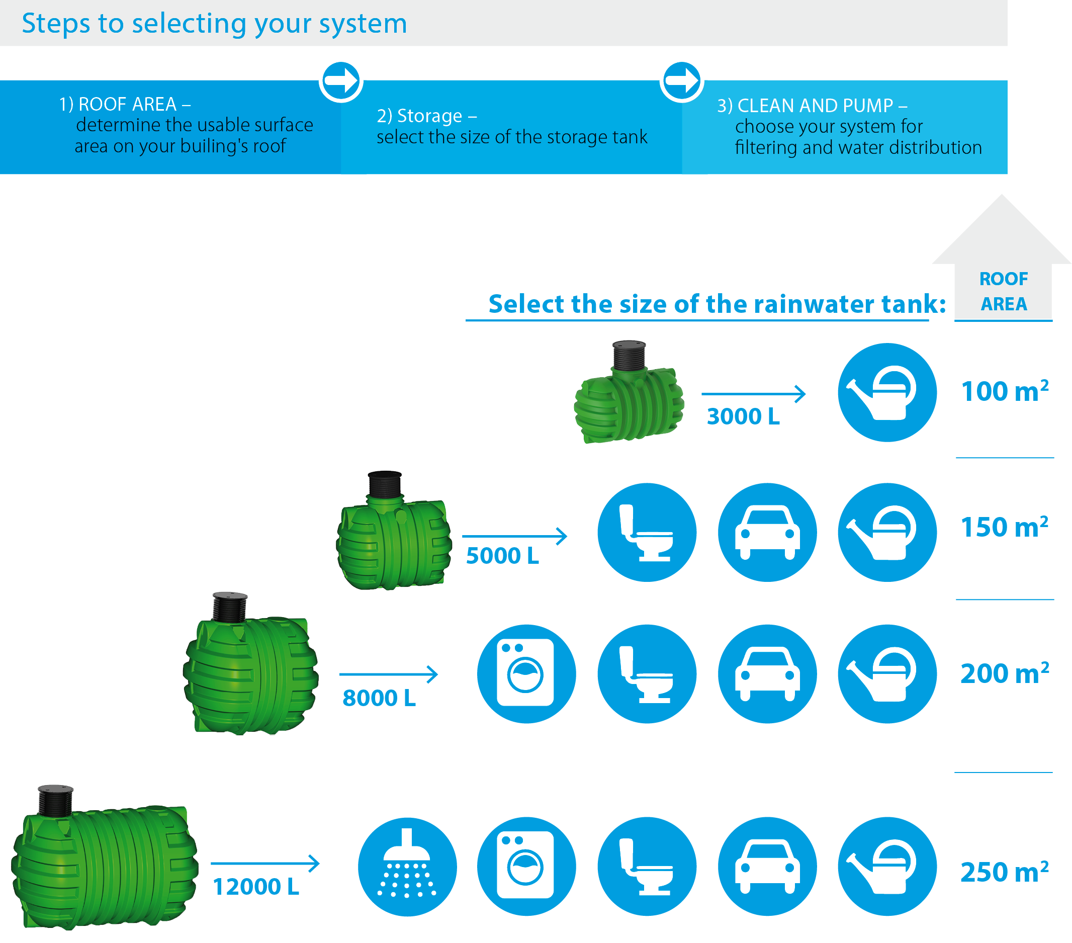 Rainwater tanks RoTerra are available in sizes from 2200 L to 50000 L.